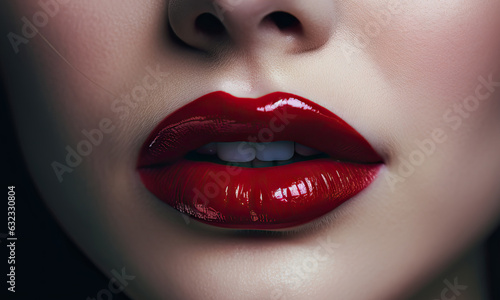Obraz premium Woman Lips Closeup, Red Lipstick Makeup, Beautiful Mouth Make-Up, Model Girl...
