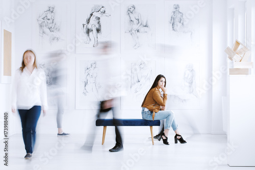 © Photographee.eu, Fototapeta premium Woman looking at sculpture