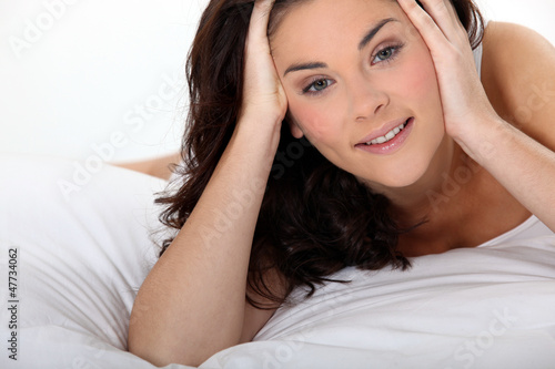 © auremar, Fototapeta premium Woman lying on a white bed