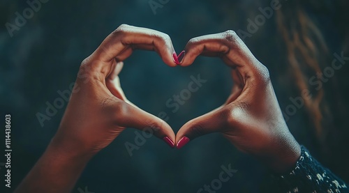 © Archibalttttt, Obraz premium Woman making heart shape with hands symbolizing love and care