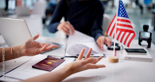 © Andrey Popov, Naklejka premium Woman Meeting Immigration Attorney