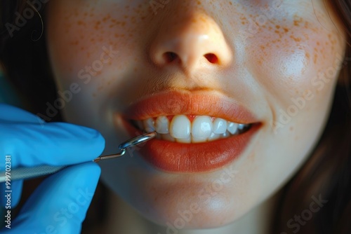 © Chanwit, Obraz premium woman mouth open during a dental cleaning
