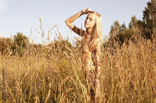 © Raisa Kanareva, Fototapeta premium woman on field with clothes off
