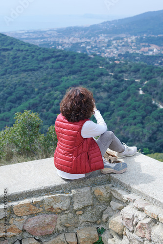 © Miquel, Naklejka premium Woman on her back at a mountain lookout point