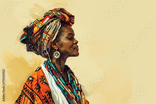 © Idressart, Obraz premium Woman on orange background with earrings and turban