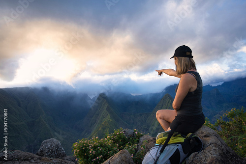 © Erwan Bedin, Obraz premium woman on the top of the mountain