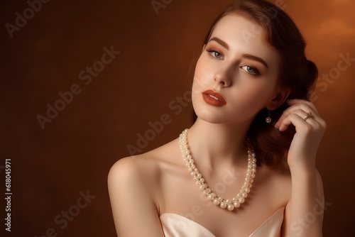 © nsit0108, Obraz premium Woman pearls jewelry. Generate Ai