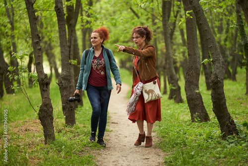 © Xalanx, Obraz premium Woman photographer and mature female model in park