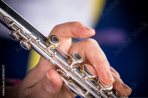 © Peter Greenway, Obraz premium Woman playing a flute.