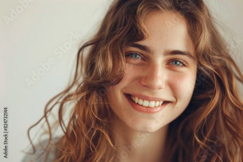 Fototapeta premium Woman. Portrait of Young Beautiful Woman Smiling Happily at Camera