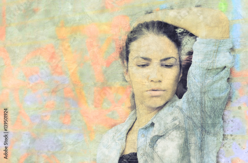 Obraz premium Woman portrait. Painted fashion illustration. Mixed media