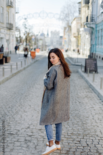 Fototapeta premium Woman portrait walking in the street