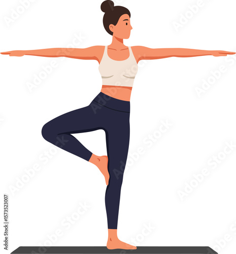 Obraz premium Woman practicing yoga tree pose on mat in athletic wear health and wellness...