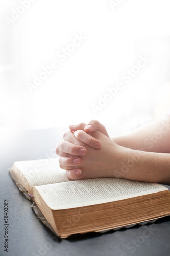 © Kevin Carden, Naklejka premium Woman praying on white background