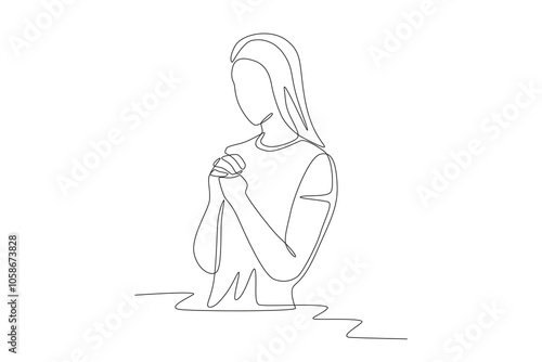 © stlineart, Fototapeta premium Woman praying. Praying concept one-line drawing