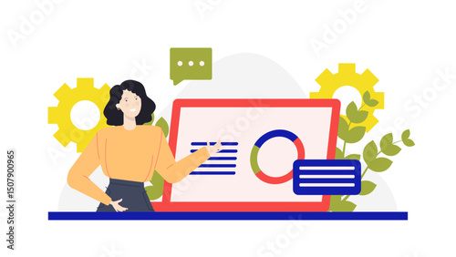 © Hiro, Obraz premium Woman presenting data on a whiteboard, suitable for business presentations, reports, educational materials, and corporate training visuals. Informative and professional.