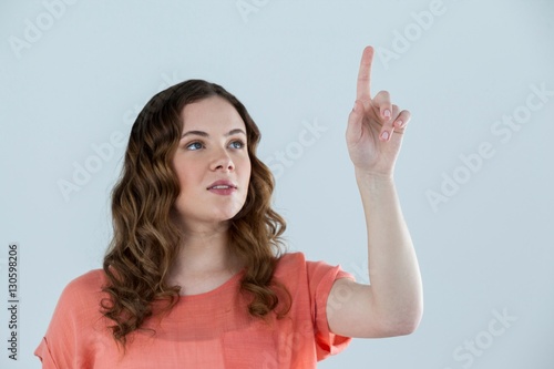 Fototapeta premium Woman pretending to touch an invisible screen