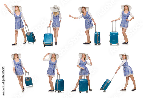 © Elnur, Naklejka premium Woman ready for summer travel isolated on white