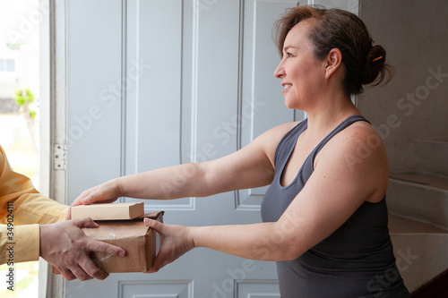 Fototapeta premium Woman receives package at home