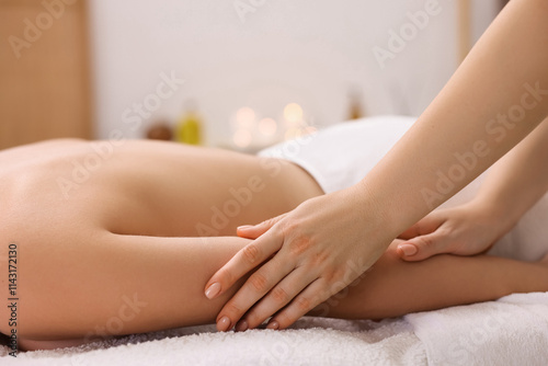 Fototapeta premium Woman receiving massage in spa salon, closeup