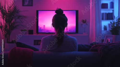 © BG_Illustrations, Naklejka premium Woman Relaxing at Home Watching OTT Content on Smart TV