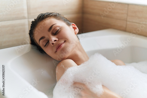 Obraz premium woman relaxing in bubble bath