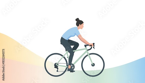 © Lakia, Obraz premium Woman riding a bicycle on a pastel gradient background cycling bike