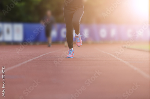 Fototapeta premium woman running jogging in stadium healthy exercise.
