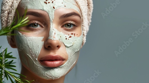 Fototapeta premium Woman's face with a natural mask applied and visible fresh ingredients