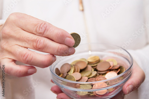 © tetxu, Fototapeta premium woman's hands holding jar of coins and entering a, savings concept