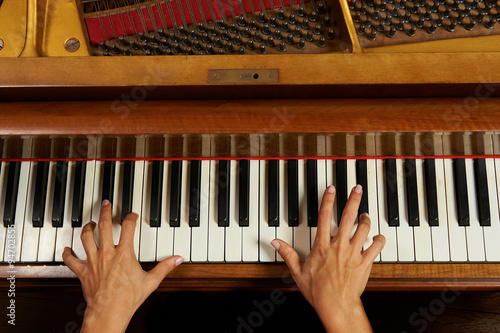 © Studio_3321, Naklejka premium Woman's hands on the keyboard of the piano closeup