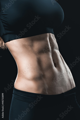 Fototapeta premium woman's muscular body with abs isolated on black. sport concept