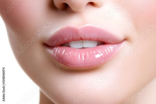 © Margarita Ratatosk, Fototapeta premium Woman's plump pink lips and smooth skin closeup. Beauty treatment and skincare concept. Lip augmentation and facial rejuvenation procedure. Cosmetic industry image.