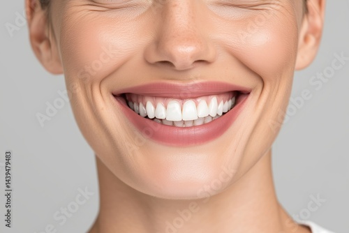 Obraz premium Woman's wide smile. healthy teeth and natural lips in dental and cosmetic care