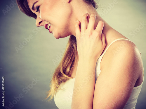 Obraz premium woman scratching her itchy neck with allergy rash
