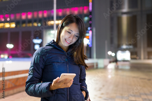 © leungchopan, Fototapeta premium Woman sending sms on cellphone