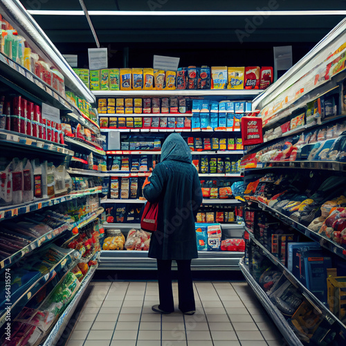 © Alexandra, Fototapeta premium Woman shopping at the supermarket. Generative Ai