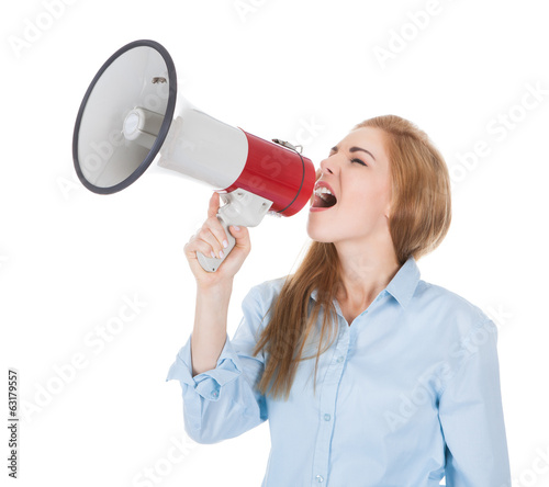 © Andrey Popov, Naklejka premium Woman Shouting Through Megaphone