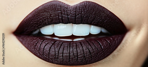 © Frank, Fototapeta premium Woman showing dark matte lipstick and white teeth