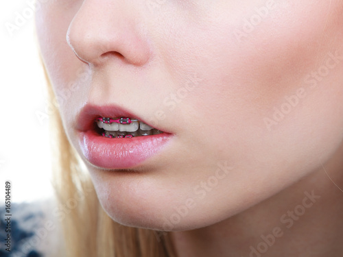 © Voyagerix, Obraz premium Woman showing her braces on teeth