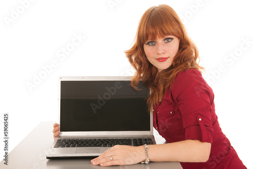 © Ivonne Wierink, Fototapeta premium Woman showing screen laptop