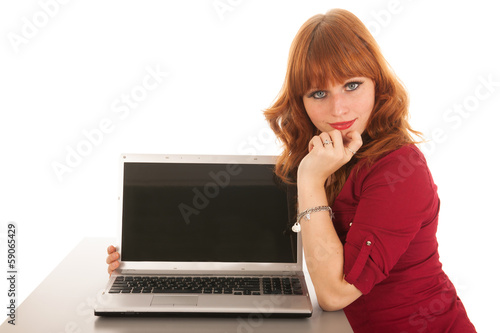 © Ivonne Wierink, Fototapeta premium Woman showing screen laptop