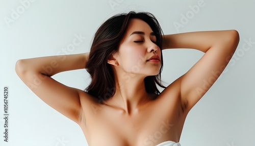 © Ming, Fototapeta premium Woman showing underarms, white background