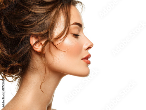 Fototapeta premium Woman side profile beauty portrait with natural makeup isolated on...