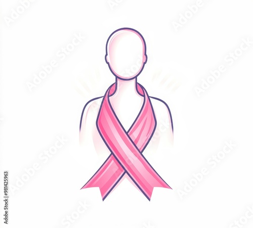 © Tetiana, Obraz premium Woman silhouette showing pink ribbon supporting breast cancer awareness
