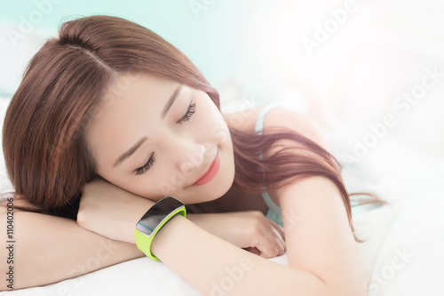 © ryanking999, Fototapeta premium woman sleep with smart watch