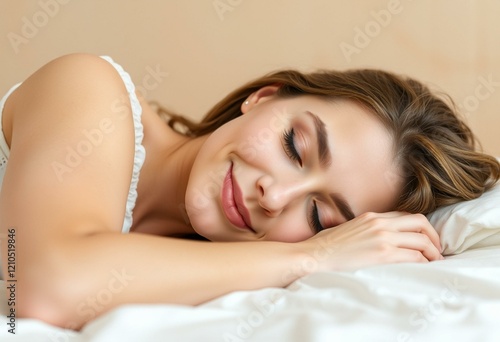 © iushakovsky, Fototapeta premium Woman sleeping on a bed