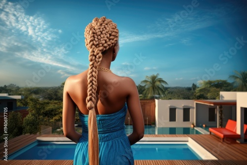 Fototapeta premium Woman Standing by Pool
