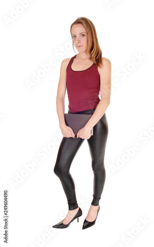 Fototapeta premium Woman standing from front holding her book
