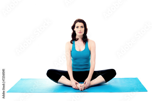 © stockyimages, Fototapeta premium Woman stretching her leg to warm up